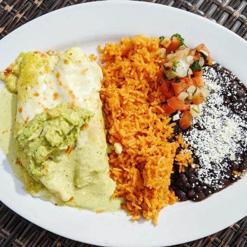 Rice, beans, jack cheese, guacamole, pico de gallo, covered in tomatillo and red chile sauces and crema. Served a la carte • Add rice & beans for 3