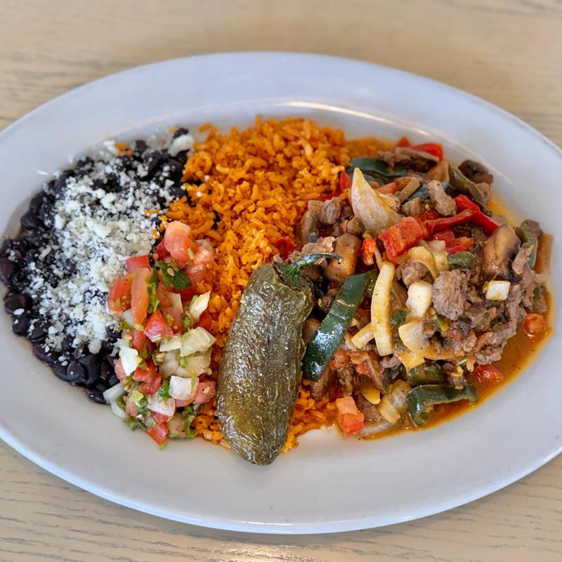 Wagyu steak, peppers, onion, mushrooms, ranchera sauce, corn or flour tortillas